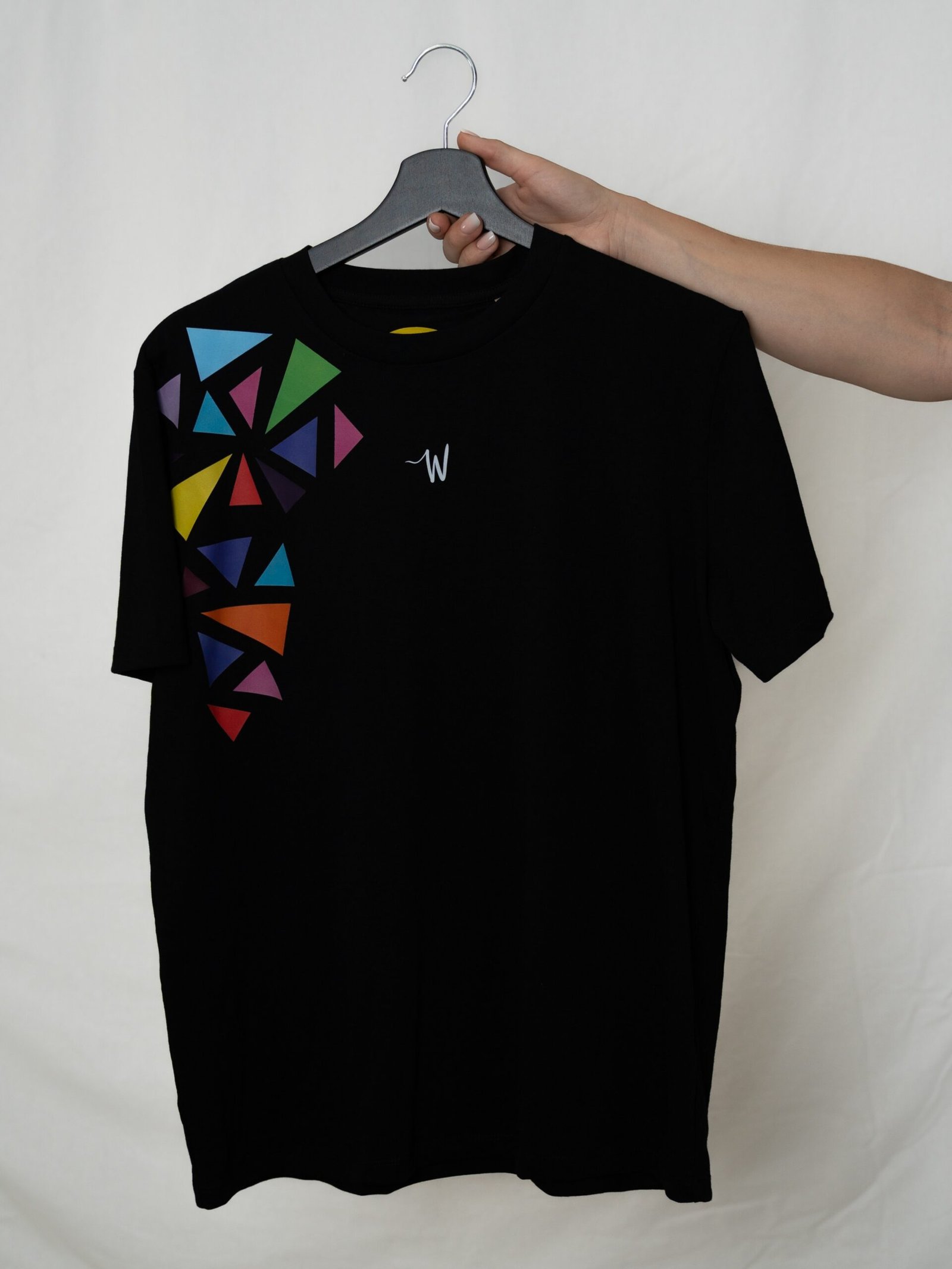 Formen und Farben der Dreiecke variieren bei jedem Stück. Die Platzierung bleibt wie auf den Bildern, aber ich entscheide bei jedem Exemplar individuell, welche Dreiecke verwendet werden. So entsteht am Ende jedes Mal ein Unikat.